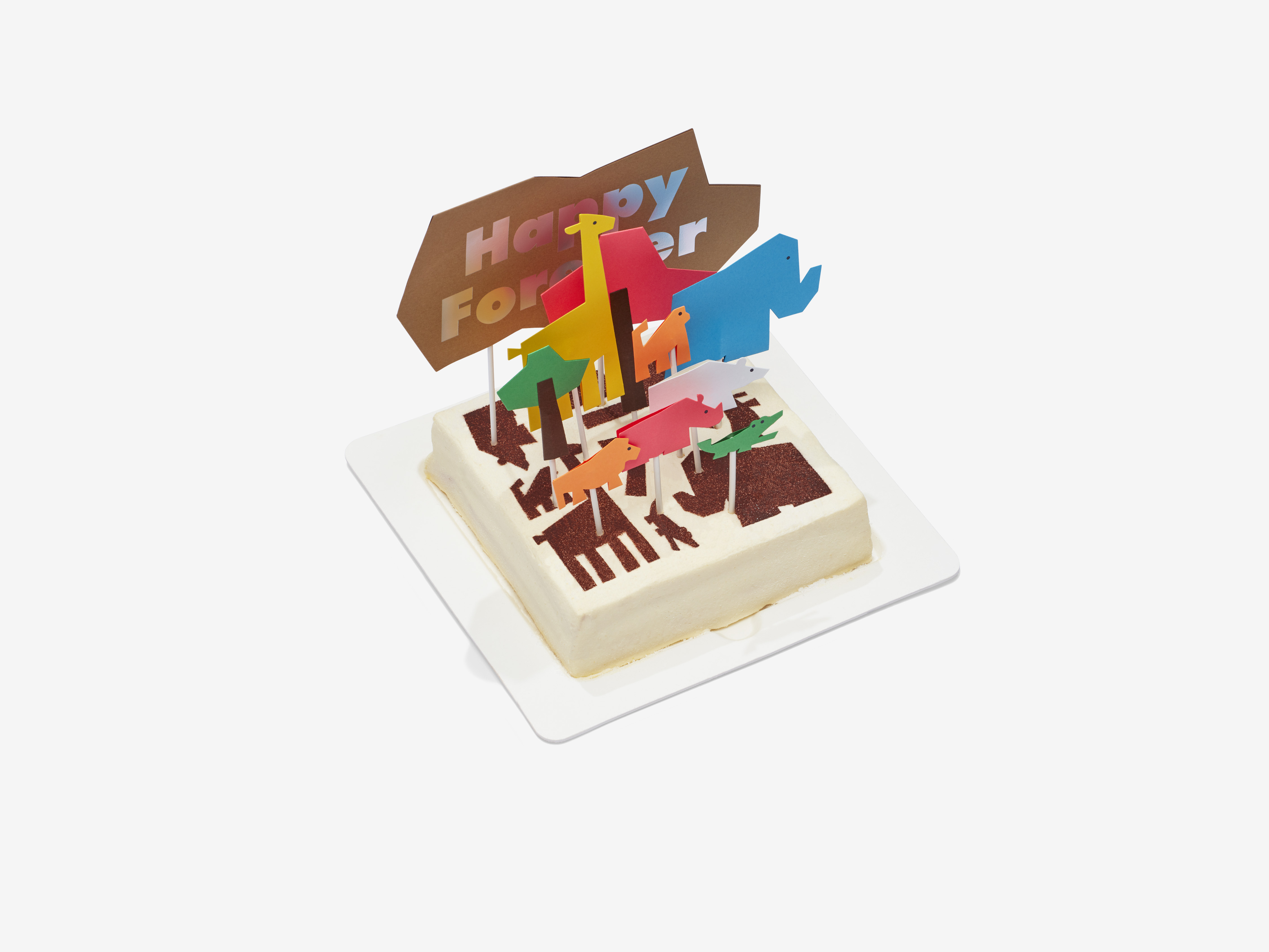 我们为廿一客设计这款儿童蛋糕时,努力想象儿时对于一块蛋糕的渴望:一个色彩缤纷的梦,一群浩浩荡荡的动物,一口香香甜甜的奶油 …… 这就是孩子心中的梦想。在动物与蛋糕的关系上,我们保留了最初的设计构想:让孩子和父母一起,把动物们放在蛋糕上。这个行为承载了童年时与家人一起在蛋糕上布置蜡烛的美好回忆。
