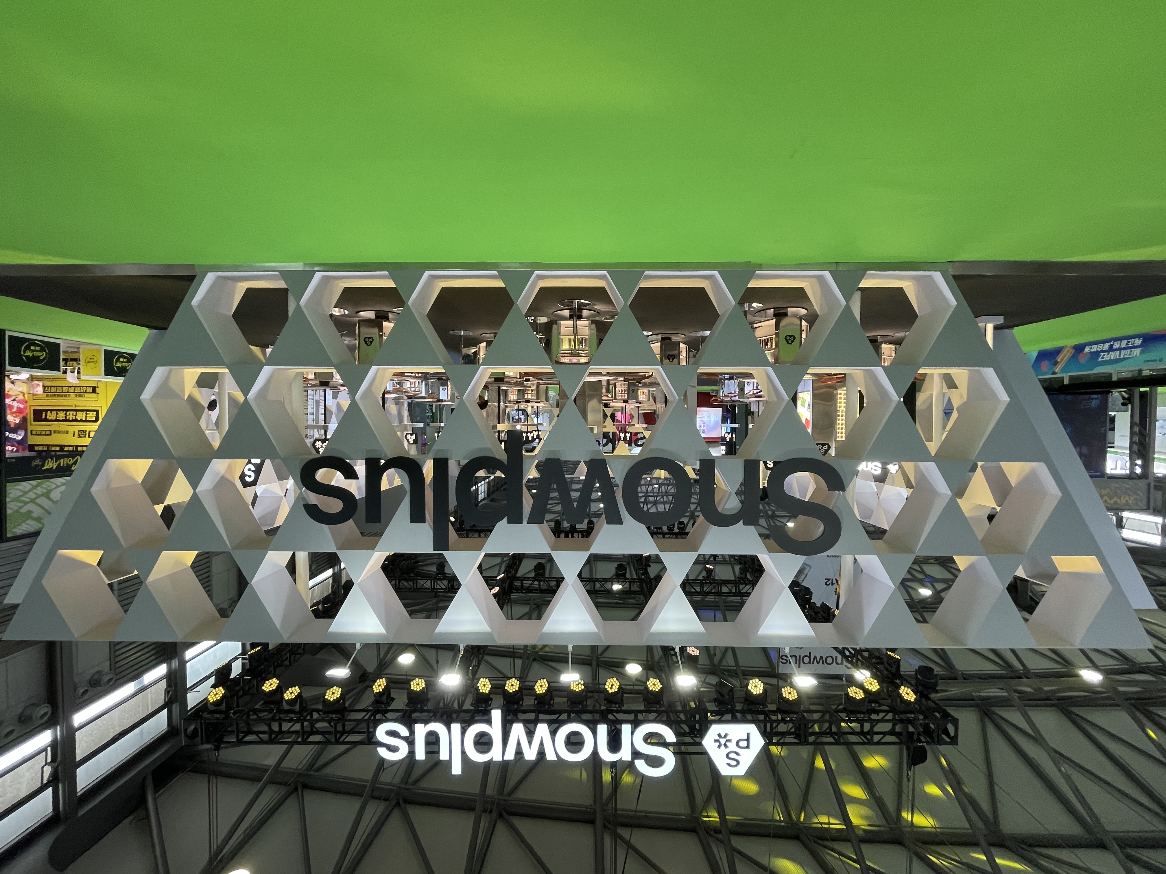设计中的逻辑有时会与人们寻常的经验相反,比如经典与稳定更适合体现创新,看似简洁轻松的图形却能承载丰富的内涵。在雪加的设计中,我们选择了最具稳定感的三角形,在此基础上调整形态,经过近百次的修改、比较,最终得出一个既符合人体视觉舒适度,又在设计上充满先锋感的特殊比例,切割出雪加独一无二的不规则六边形,然后通过六边形空间的推演,设计出完美嵌入的小雪花,与 Snowplus 的缩写