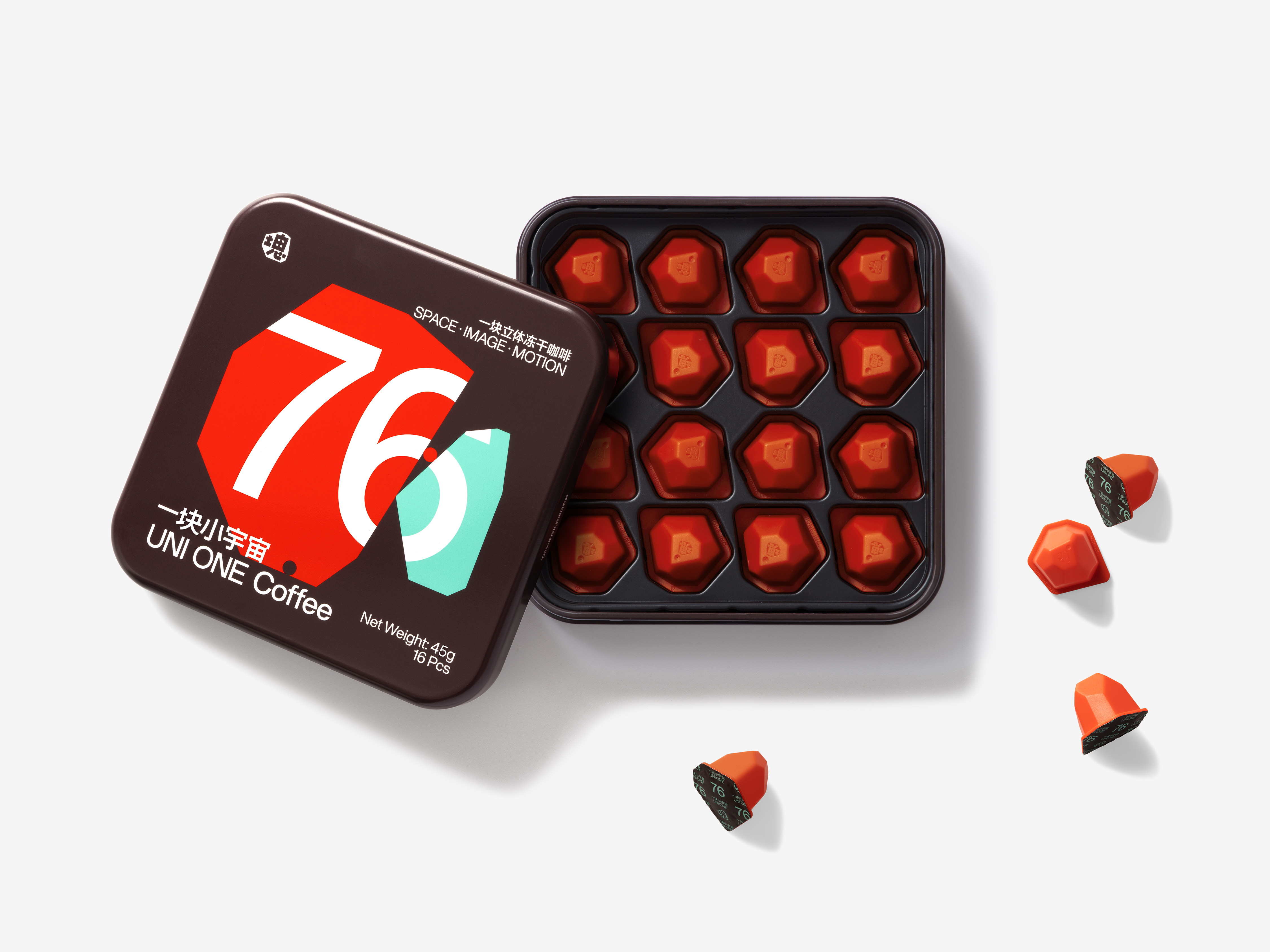 一块小宇宙是一个全新的速溶咖啡品牌,与其他同类品牌的不同之处在于他们更注重产品的原创性,一块小宇宙认为:“咖啡也可以是一块既好看又好玩还好喝的样子”。作为一个旧赛道的新品牌,设计中的醒目和特殊性既是放手一搏的选择,也是对品牌基因的恰当描述。我们直接把产品研发中使用的数字标号,作为每款产品的命名,放大的数字不仅能在复杂的商业环境里脱颖而出,而它的由来也具备可被发掘的故事,色彩系统则用来辅助说明产品口味,这些开放性的设置都为品牌未来拓宽品类时提供了很宽的阈值。我们希望帮助品牌建立一个与消费者直接、愉悦的沟通桥梁。